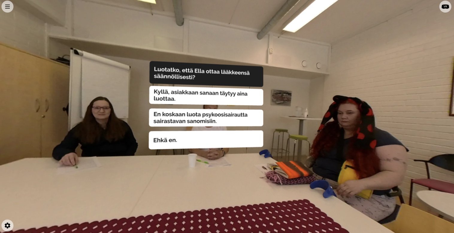”Se [vr-harjoite] on erityisen hyvä, koska opin auttamaan skitsofreniapotilasta ja opin paljon siitä, kuinka tunnistaa skitsofreniasta kärsivä henkilö.”