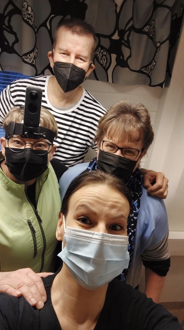 ”Uutta ja mielenkiintoista. Kun aloitin, en edes tiennyt mitä VR on. Kun tekee ja oppii, kiinnostus kasvaa. Olen oppinut käsikirjoittamisesta, kuvaamisesta, editoinnista, Wonda VR [vr-alustan] käytöstä ja mahdollisuuksista. Monialainen yhteistyö on ollut avartavaa. Yhteistyökuvio kotihoitoyksikön kanssa oli mahtavaa. 3DBearin kanssa yhteistyö on sujunut, välillä pienetkin yksityiskohdat on viilattu yhdessä. Ydintiimin yhteistyö on sujunut ja se on ollut aina mukavaa.”