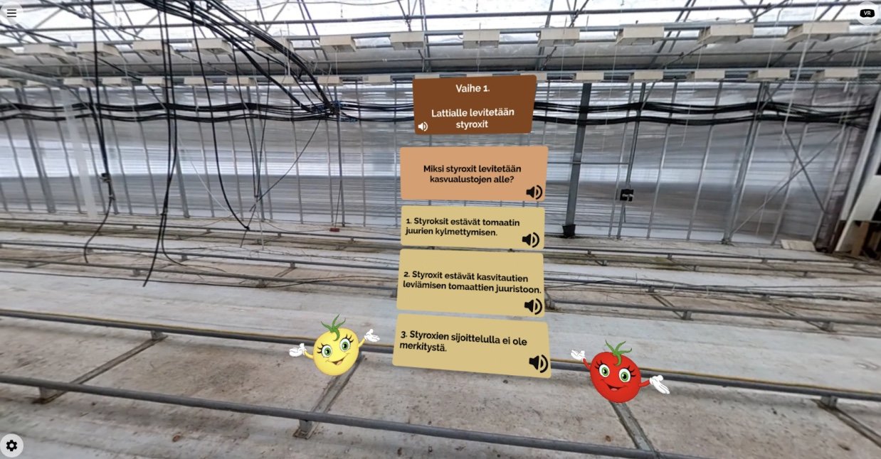 UFO-hankkeessa kehitettiin kolme erilaista VR-ympäristöä: Ravintola- ja catering-alalle, asiakaspalveluun sekä puutarha-alalle. Kaikki sisältöjen teemat valikoituivat opiskelijoiden tarpeista käsin. Esimerkiksi puutarha-puolella kasvihuoneessa harjoittelu ei ole mahdollista kuin Janakkalan toimipisteessä. Kun toisista toimipisteistä tullaan Janakkalaan harjoittelemaan, jää harjoitteluaika melko vähäiseksi. Virtuaalisella toteutuksella opiskelijat pääsevät harjoittelemaan tehtäviä ennalta niin monta kertaa kuin haluavat, jolloin Janakkalassa päästään suoraan työskentelemään. “Lisäksi opiskelija tietää pääsevänsä tuttuun paikkaan, kun hän on voinut harjoitella eri työtehtäviä Janakkalan toimipaikalla kuvatuissa työympäristöissä”, toteaa Taru. Liven tuottamassa sisällössä opiskelija pääsee harjoittelemaan työelämän vuorovaikutustilanteita. “Monella nuorella opiskelijalla ei ole lainkaan työkokemusta ja työpaikalle meneminen ja uusien ihmisten kohtaaminen voi jännittää. Arkisia työtilanteita näyttämällä halutaan helpottaa nuoren siirtymistä työympäristöön”, kertoo Minna.