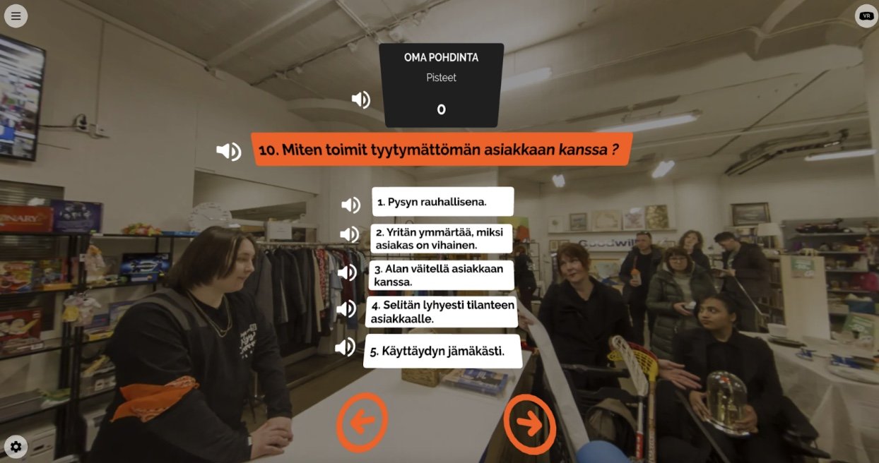 VR-kehityshankkeen yhteydessä selvitettiin laajasti erityistä tukea tarvitsevien opiskelijoiden tarpeita ja niihin vastaamista VR-teknologian avulla. VR-ympäristöjen tekstitysten, ääniraitojen, symbolien ym. avulla tuettiin opiskelijoita ja innostusta lisättiin pelillistämisellä. Tärkeänä osana hanketta oli projektitiimin laajasti toteuttama opiskelijatestaus, jonka pohjalta saatiin tärkeää tietoa sisällön edelleen kehittämiselle.