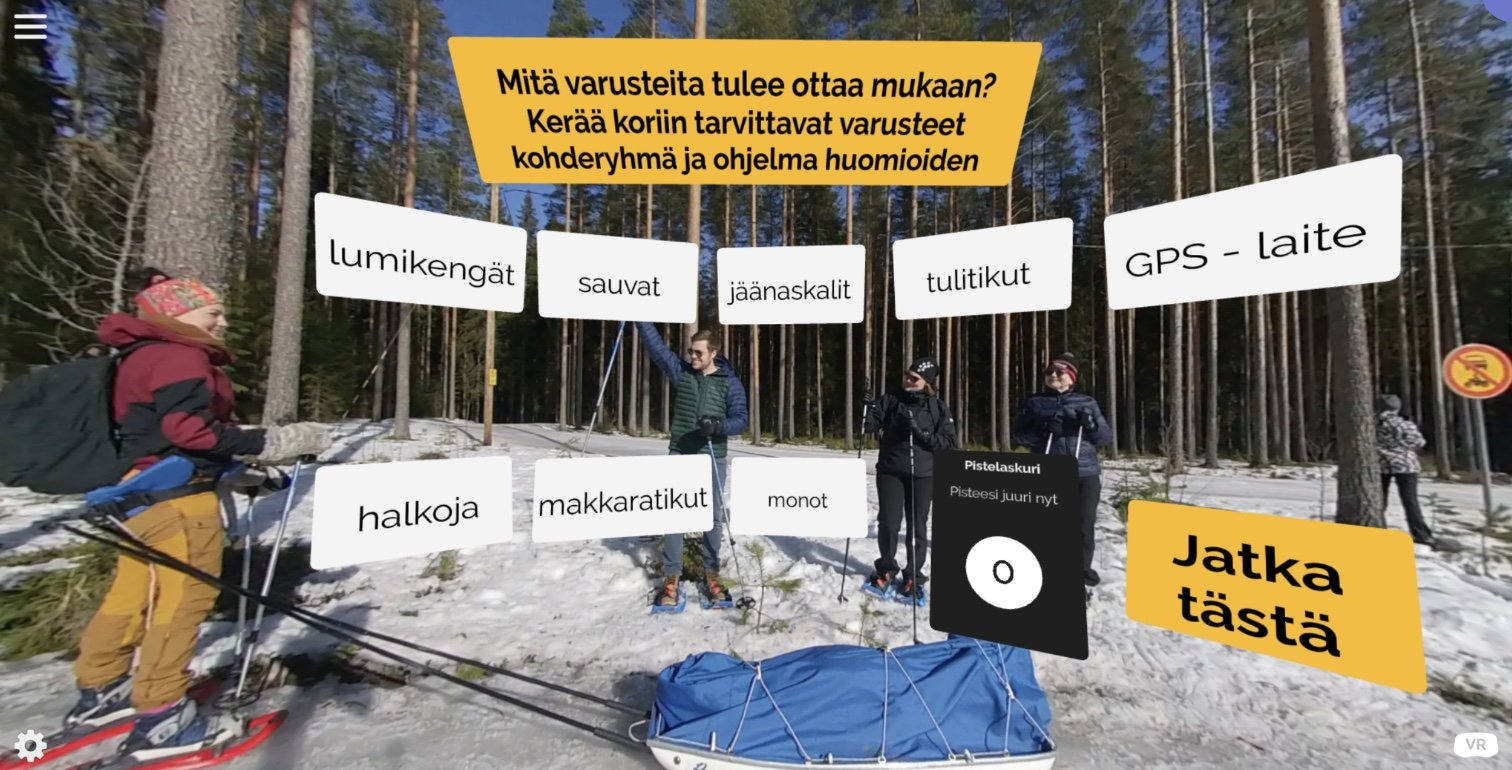 A snow-shoe hike for Japanese tourists and a field trip for the school kids were chosen as a theme for the VR productization process. The process itself contains every phase of productization from idea generation to value proposition and work elements. In the VR environment a student has a chance to design a genuine experience for the Japanese tourists or the school kids, paying attention to the details.