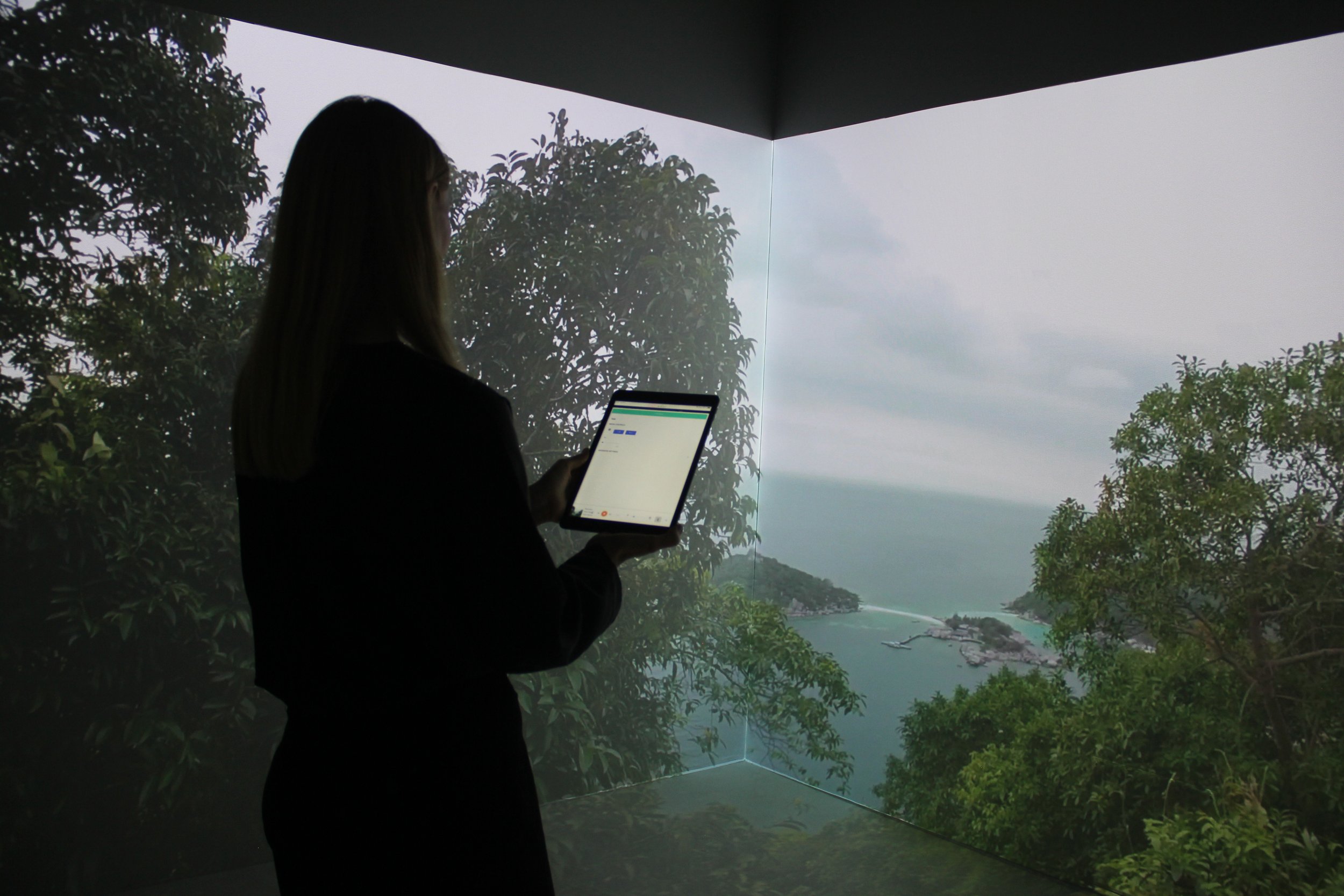An Immersive Space is based on technology where virtual environments (including VR environments) are projected onto walls and the floor. The virtual environments are ready-made simulations or custom-produced, for example using 360° images and videos. Nearly 10,000 ready-made simulations are available and can be used as-is or customized to fit specific needs. Creating entirely new content has also been made user-friendly and effortless.